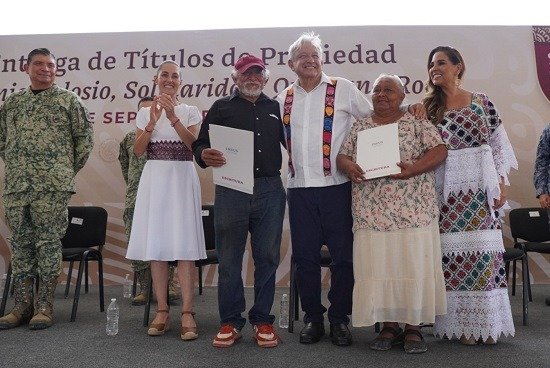 Así lo dijo el presidente Andrés Manuel López Obrador desde la estación Playa del Carmen del Tren Maya, al encabezar la entrega de las primeras mil 600 escrituras a familias de la colonia Colosio, donde recordó que esta acción era un compromiso, y la clave para cumplirlo fue el apoyo de la gobernadora de Quintana Roo, María Elena Lezama Espinosa.