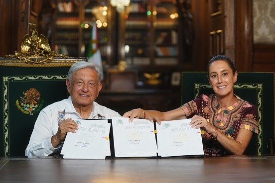 En este acto, el jefe del Ejecutivo estuvo acompañado por la presidenta electa Claudia Sheinbaum Pardo en calidad de testigo de honor.