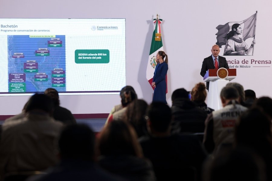 De igual forma, la Secretaría de la Defensa Nacional (Sedena) atiende 890 kilómetros del Sureste especialmente en las carreteras y caminos afectados en el traslado de materiales para la construcción de las obras del Tren Maya; se trata de 17 carreteras federales con una longitud de más de 897 kilómetros y 181 caminos rurales y alimentadores con más de 427 kilómetros en los estados de Veracruz, Tabasco, Chiapas, Campeche, Quintana Roo y Yucatán.