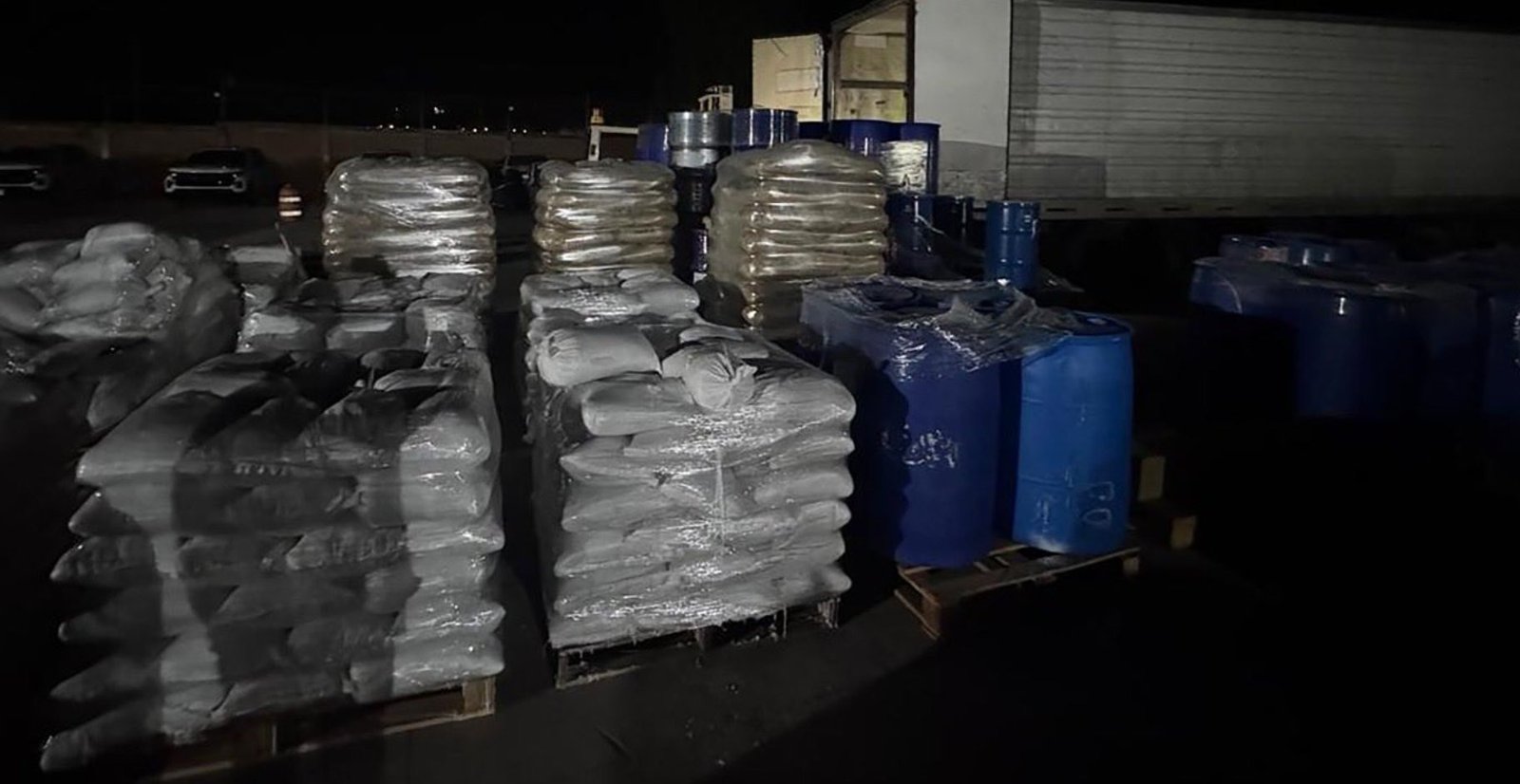 En este punto, agentes de la AIC tuvieron contacto con un tractocamión acoplado a una caja seca, al cual le realizaron una revisión para evitar la comisión de algún delito, lo que llevó al hallazgo de diversos materiales con características de precursores químicos, por lo que procedieron a su aseguramiento para evitar su uso en la fabricación de drogas sintéticas.