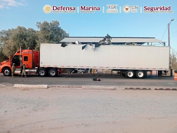 De acuerdo con un comunicado, el hallazgo ocurrió en un punto de revisión en San Luis Río Colorado, donde elementos de la Secretaría de la Defensa Nacional, Guardia Nacional, Secretaría de Marina, Fiscalía General de la República y Secretaría de Seguridad y Protección Ciudadana detectaron irregularidades en el techo de la caja del vehículo, por lo que tras una inspección minuciosa, localizaron los paquetes envueltos en plástico negro con una sustancia con las características de la cocaína.