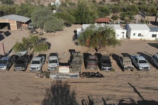México.- En Pitiquito, Sonora, en seguimiento al operativo por el ataque a un ganadero de la región, autoridades que integran la Mesa Estatal de Seguridad aseguraron un predio, un vehículo tipo “monstruo”, 13 vehículos, arsenal de armas de fuego y equipo táctico.