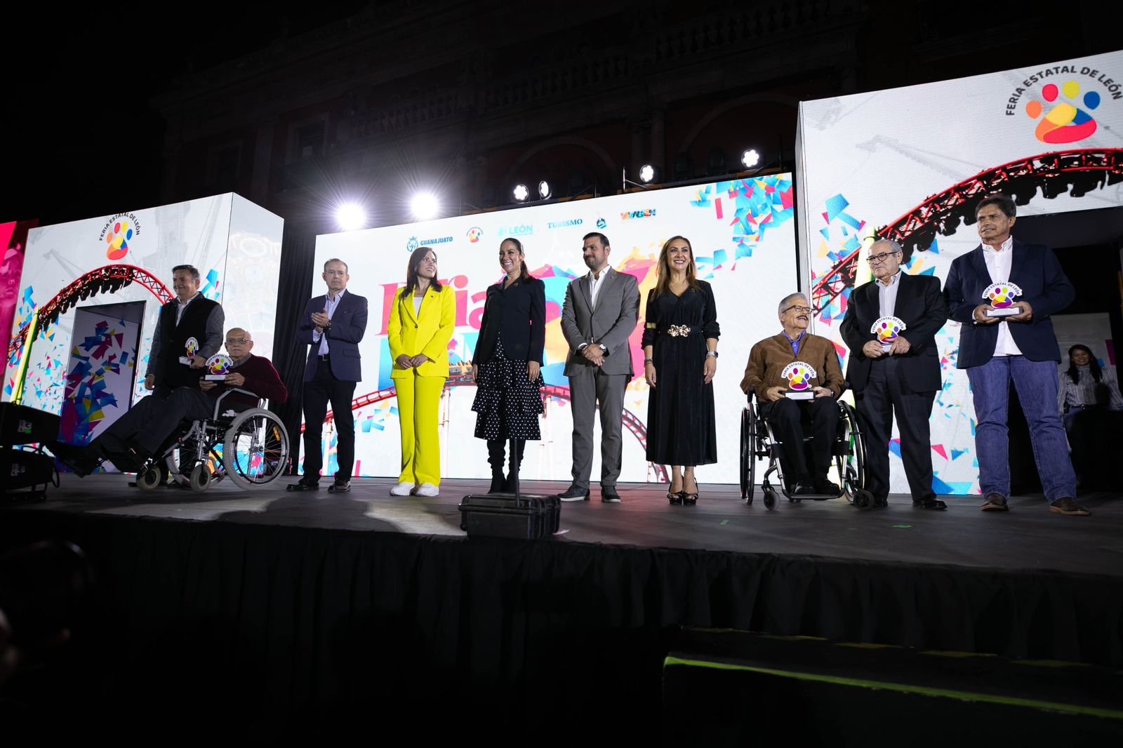 En esta ceremonia, la Gobernadora, acompañada de Alejandra Gutiérrez Campos, Presidenta Municipal y David Novoa Toscano, Presidente del Patronato de la Feria de León, entregaron reconocimientos a expresidentes del Consejo Directivo del Patronato de la Feria Estatal de León.