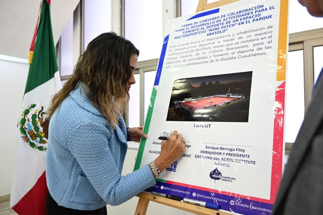 El acto protocolario se llevó a cabo en la Sala de Cabildos de la Alcaldía Cuauhtémoc, encabezada por la Alcaldesa Alessandra Rojo de la Vega, y contó con la participación de Enrique Berruga Filloy, Director General Ejecutivo de Aspen Institute México; Margarita Safdie, Directora de Project Play México; y Eva Yahel Guerrero Vásquez, Directora General de Desarrollo y Bienestar de la Alcaldía.