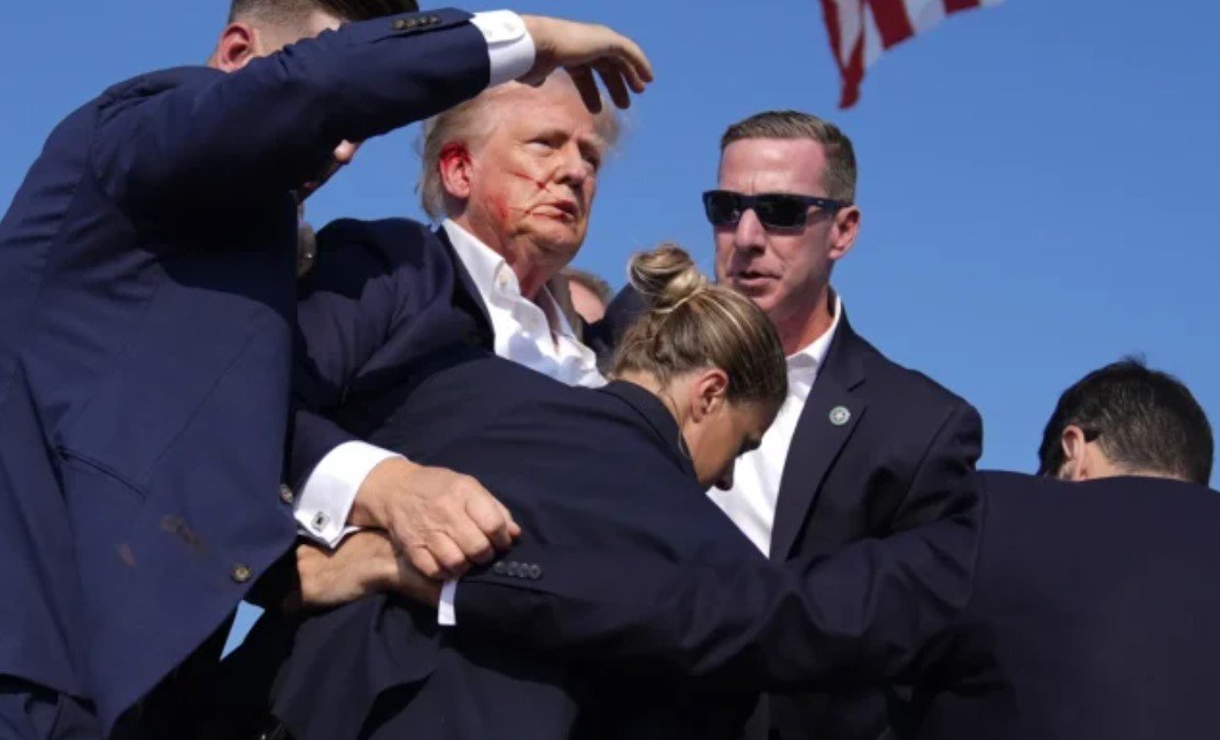 Con sangre en el pabellón de su oido derecho, el candidato republicano a la presidencia de Estados Unidos fue llevado al hosspital más cercano donde se reporta estable .