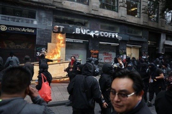 Durante la manifestación, que salió de la Plaza de las Tres Culturas, en Tlatelolco, para llegar al Zócalo, un grupo de encapuchados se infiltró en la protesta, generando daños en 7 mil 549 negocios, los cuales reportaron pérdidas por más de 15. 8 millones de pesos por ventas no realizadas.