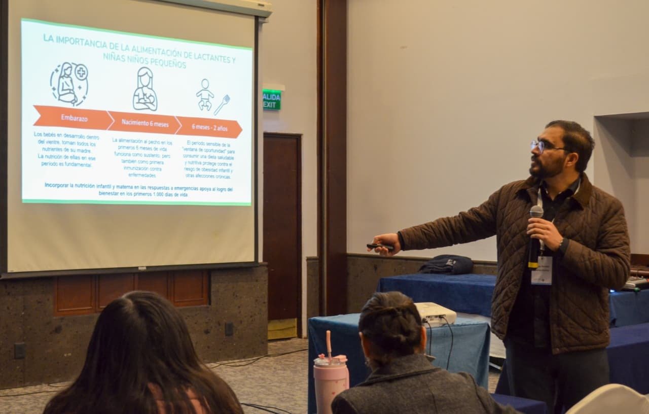 Las y los participantes revisaron los impactos de las emergencias en la nutrición materno-infantil, los componentes de la respuesta humanitaria, el marco normativo vigente, así como metodologías de diagnóstico para evaluar la situación nutricional antes, durante y después de una emergencia. Asimismo, se abordaron estrategias de protección y fomento de la lactancia materna, haciendo énfasis en los riesgos del uso inadecuado de sucedáneos de leche, entre otros temas.