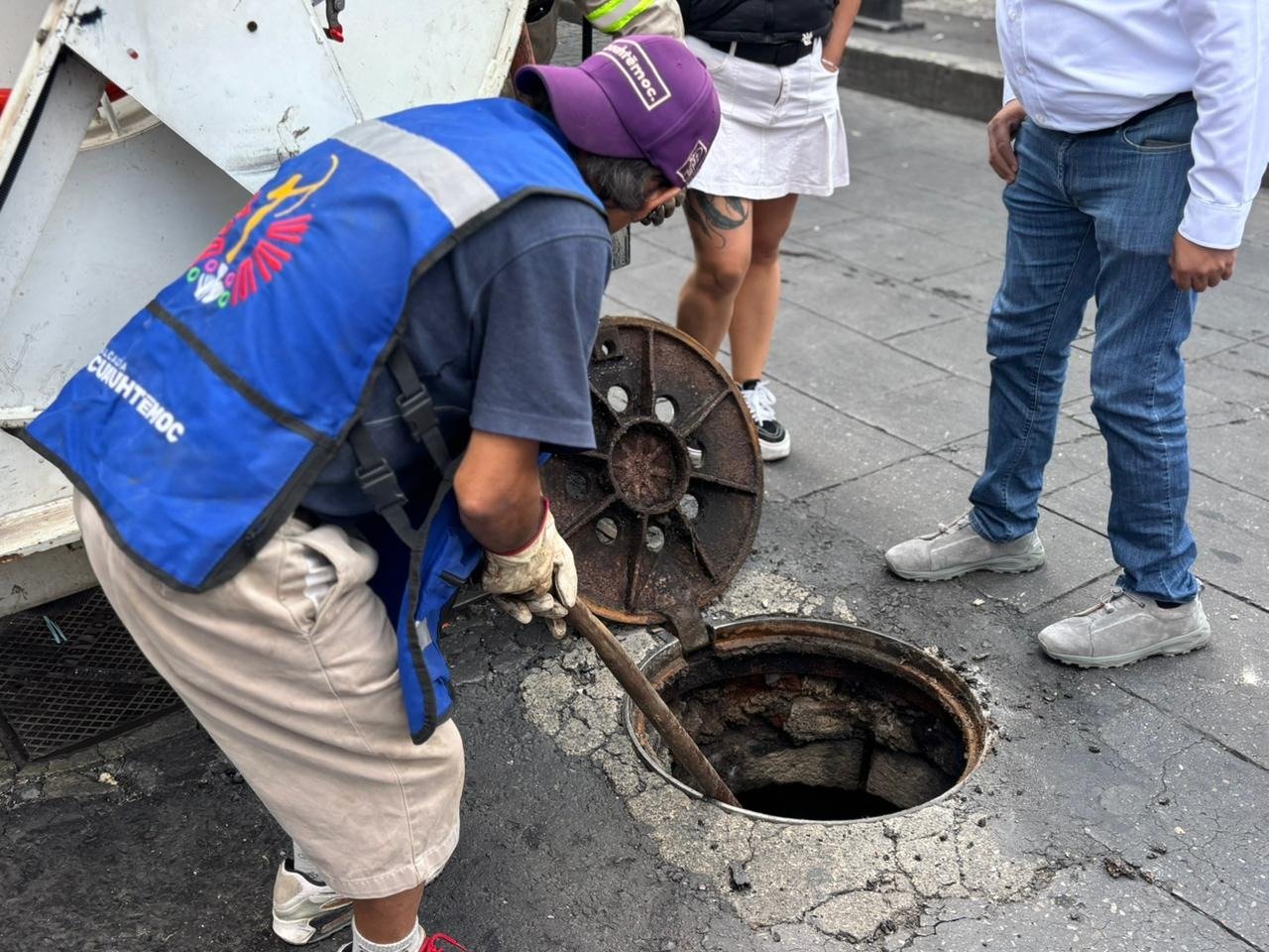 Con desazolve, personal de la alcaldía Cuauhtémoc quita taponamientos ocasionados por el desecho de aceite en coladeras