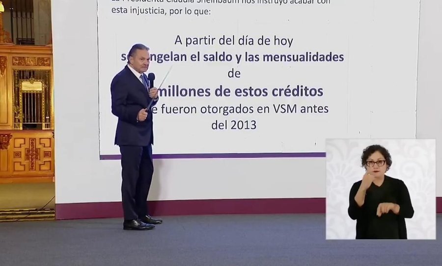 “A partir del día de hoy se congelan saldos y mensualidades de 2 millones que entran en el esquema salarios mínimos. Se congelan a partir de hoy”, detalló durante la Mañanera del Pueblo.