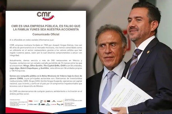 México.- Luego de que surgieran rumores de que la familia Yunes fuera accionista de la Corporación Mexicana de Restaurantes (CMR), la firma desmintió esta versión.