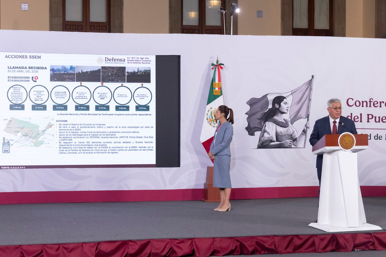 Ciudad de México.- La presidenta Claudia Sheinbaum encabezó la presentación de los hechos del ataque armado ocurrido en la zona arqueológica de Teotihuacán el pasado 20 de abril, donde autoridades detallaron que la rápida intervención de la Guardia Nacional fue clave para evitar que escalara a una tragedia de mayores dimensiones.