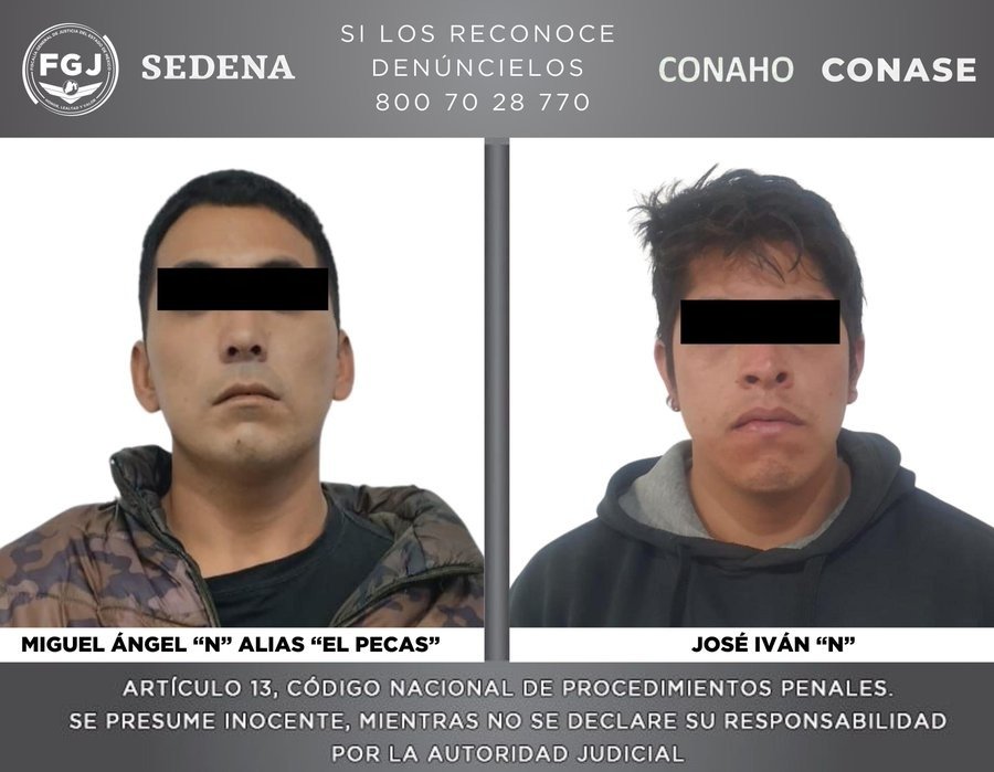 Estado de México.- Miguel Ángel “N” alias “El Pecas” y José Iván “N”, fueron detenidos por su probable participación en el homicidio de Paola Salcedo registrada la noche del pasado 29 de junio, en el municipio de Huixquilucan.