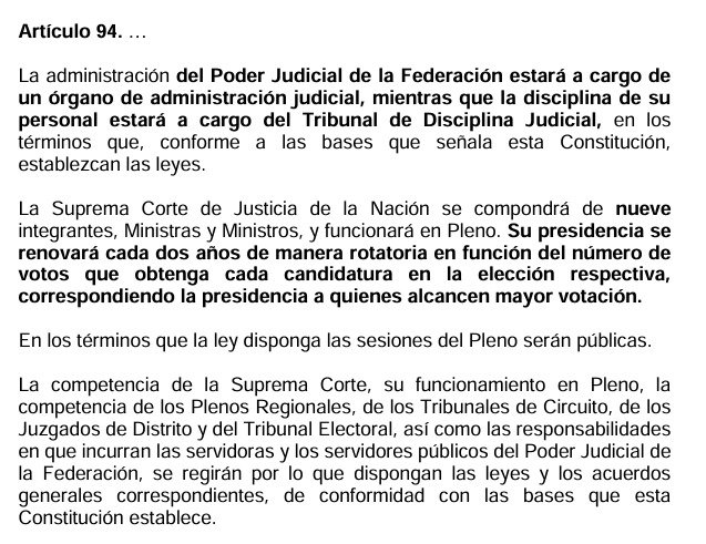 De acuerdo con un documento que circula en redes sociales, el documento que van a discutir los legisladores en sus respectivas comisiones, también se considera que la Suprema Corte de Justicia de la Nación tenga sólo nueve ministros en lugar de once.