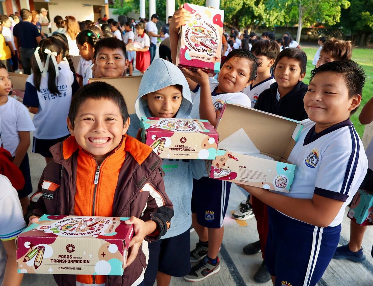 “Por primera vez, todos los estudiantes de educación especial, preescolar, primaria y secundaria de las 429 escuelas públicas de Cancún recibirán de manera gratuita un par de tenis escolares, siendo en total 122 mil 525 pares”, aseveró.