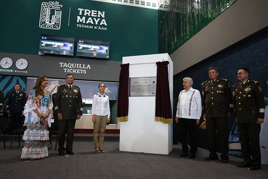 Destacó el trabajo del comandante del Agrupamiento de Ingenieros “Felipe Ángeles”, Gustavo Ricardo Vallejo Suárez, del director general de la Empresa de Participación Estatal Mayoritaria “Tren Maya” S. A. de C.V., Oscar David Lozano Águila y del secretario de la Defensa Nacional, Luis Cresencio Sandoval González, para hacer posible la operación del Tren Maya.