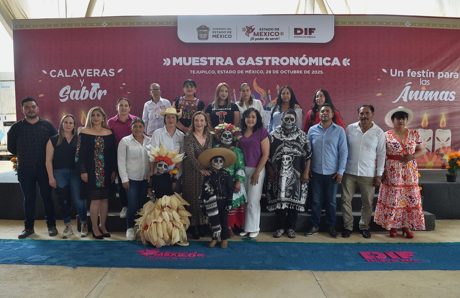Tejupilco, Estado de México.- Con ofrendas, platillos, catrinas, música, baile, poesía, algarabía y múltiples actividades, más de dos mil mexiquenses disfrutaron los usos y costumbres del sur del Estado de México en la Muestra Gastronómica “Un Festín para las Ánimas” en el municipio de Tejupilco organizado por el Gobierno del Estado de México, a través del Sistema para el Desarrollo Integral de la Familia (DIFEM).