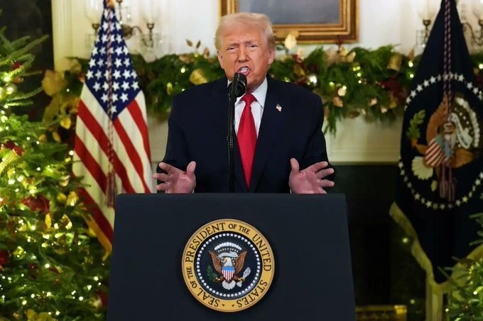 Washington, Estados Unidos.- El presidente de Estados Unidos, Donald Trump, reiteró este 17 de diciembre su postura contra Venezuela y volvió a justificar las acciones de su administración, luego de ordenar un bloqueo total a los petroleros sancionados que entren y salgan del país sudamericano, así como de designar al gobierno venezolano como “organización terrorista extranjera”.