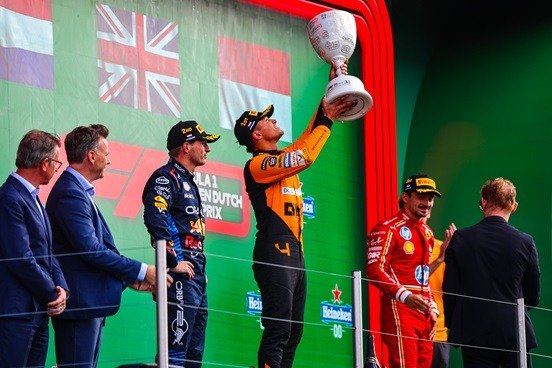 A pesar de que en la largada el protagonista fue Max Verstappen, quien salió mucho mejor que Norris y lo superó con claridad, el piloto neerlandés no pudo lucir dominador ante su público, tal como lo había hecho desde 2021, cuando la carrera en el Circuito de Zandvoort regresó al calendario del ‘Gran Circo’.