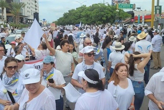 Los ciudadanos salieron vestidos de blanco y portando algunas pancartas y cartulinas con exigencias de paz, mientras otros gritaban “Culichi que se respeta, quiere la paz completa”.