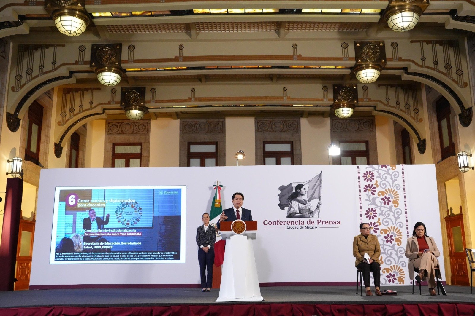 - El secretario de Educación Pública, Mario Delgado, anuncia 8 acciones prioritarias para establecer y fomentar la salud alimentaria
