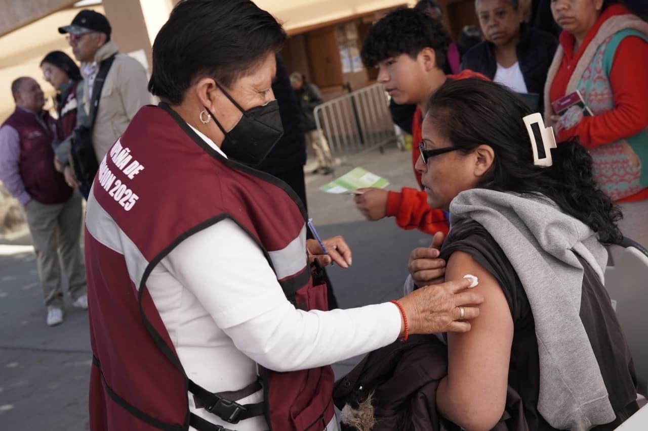 Al asistir al Parque Ecológico Zacango, uno de los 450 puntos instalados en todo el territorio mexiquense, dio a conocer que participan las instituciones del sector salud IMSS, IMSS Bienestar, ISSSTE, ISSEMyM e invitó a la población a acudir para recibir la inmunización correspondiente.
