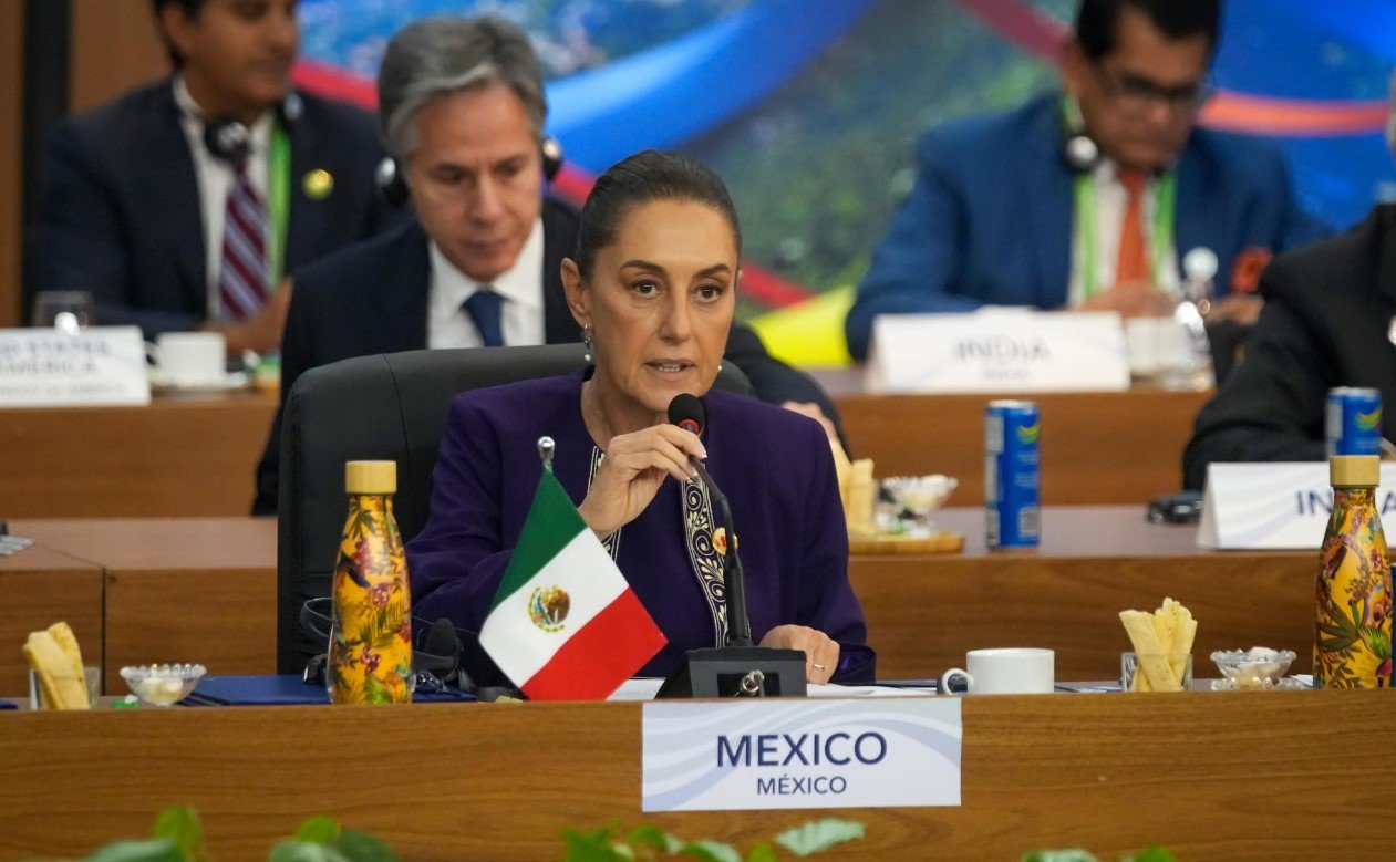 Río de Jaineiro, Brasil.- La Presidenta Claudia Sheinbaum propuso en la Cumbre de Líderes del Grupo de los Veinte (G20), que se celebra en Río de Janeiro, Brasil, que se destine el 1% del gasto militar global para poner en marcha el programa de reforestación más grande de la historia.
