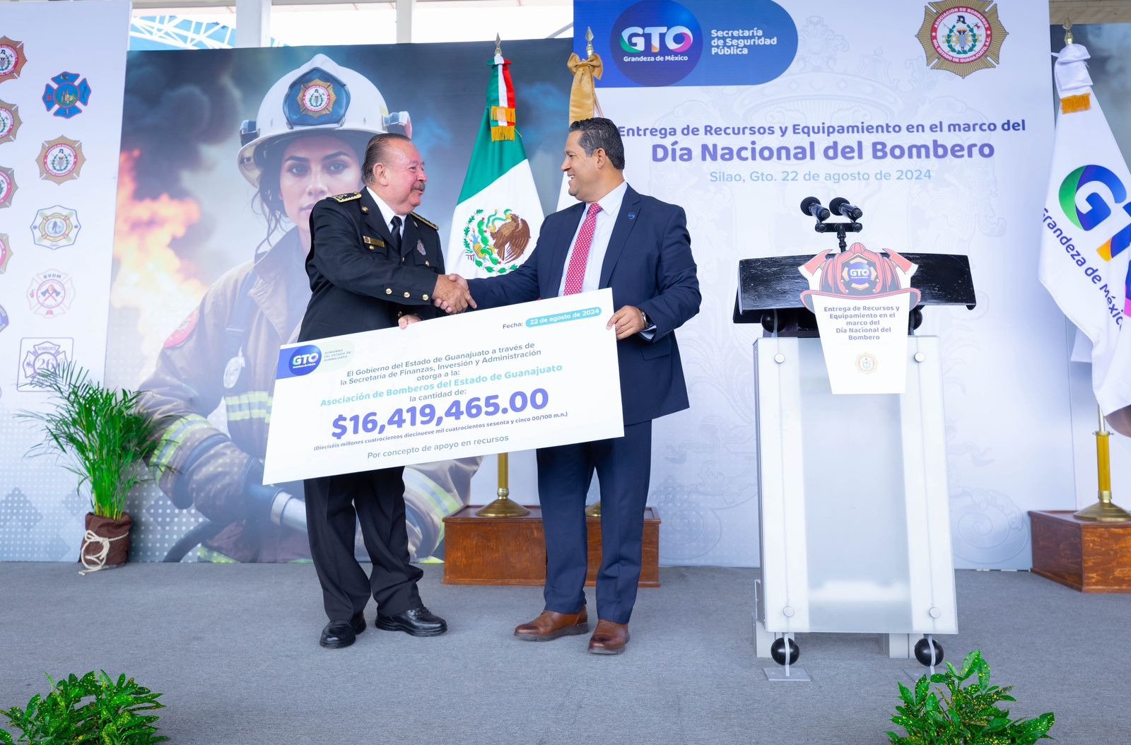 Los cuerpos de bomberos que recibieron equipamiento son de Abasolo, Apaseo El Grande, Cuerámaro, Doctor Mora, Irapuato, los municipios del Noreste del Estado, Salamanca, la delegación de Santa Ana Pacueco en Pénjamo, Uriangato, Valle de Santiago, Apaseo El Alto, Cortazar, Celaya, Juventino Rosas, Manuel Doblado, Ocampo, Purísima del Rincón, Salvatierra, San José Iturbide y San Miguel de Allende.
