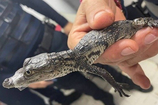 Elementos del Sistema de Transporte Colectivo (STC) acudieron a rescatar al cocodrilo bebé, que no presentaba daños, posteriormente lo entregaron a integrantes de la Brigada de Vigilancia Animal (BVA), con la finalidad de que sea reincorporado a su hábitat.