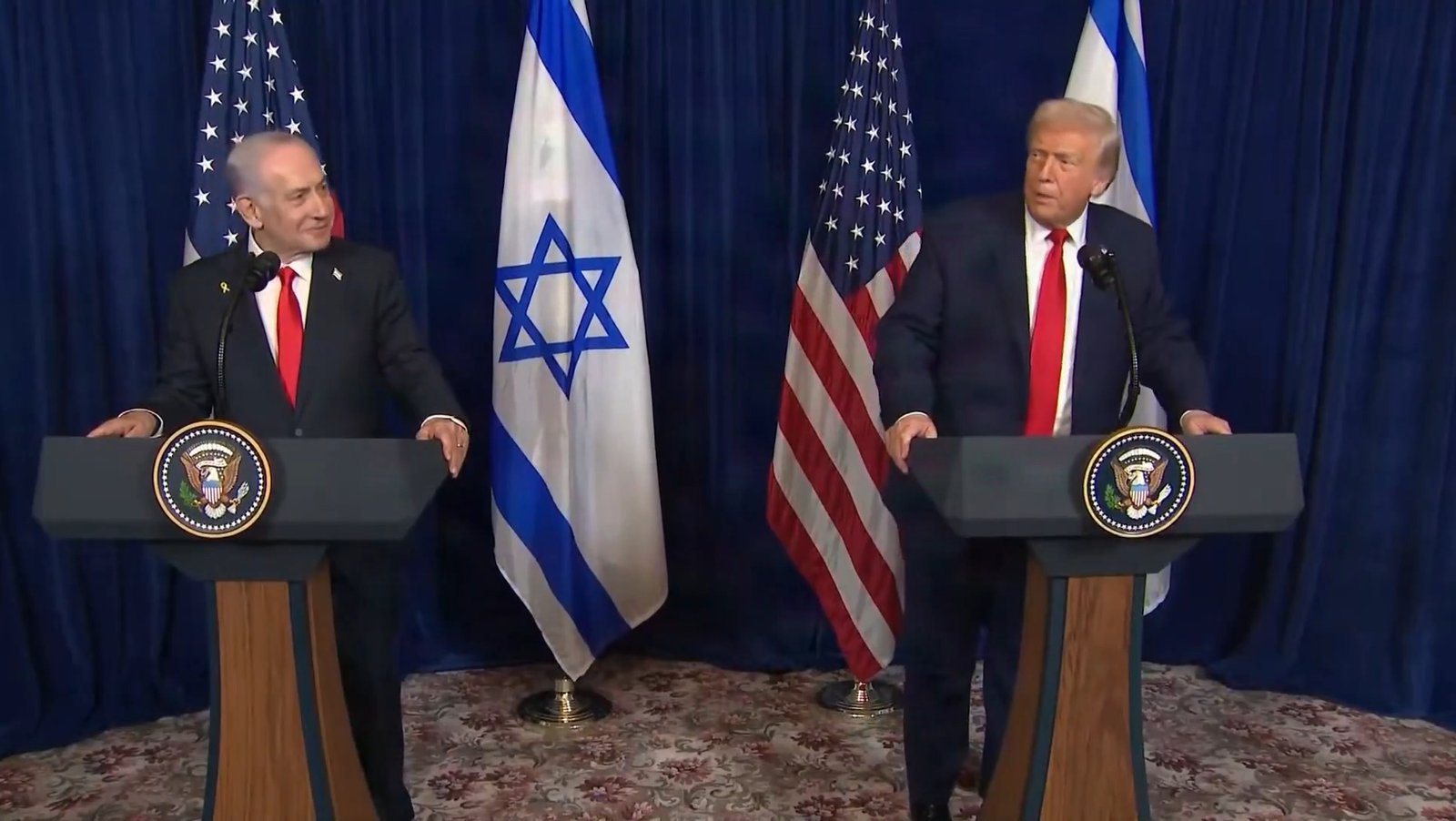 Durante el recibimiento de Netanyahu, Donald Trump afirmó que el presidente de Israel, Isaac Herzog, le había dicho que el indulto para el primer ministro israelí, quien actualmente se encuentra prófugo de la Corte Penal Internacional, está “en camino”.
