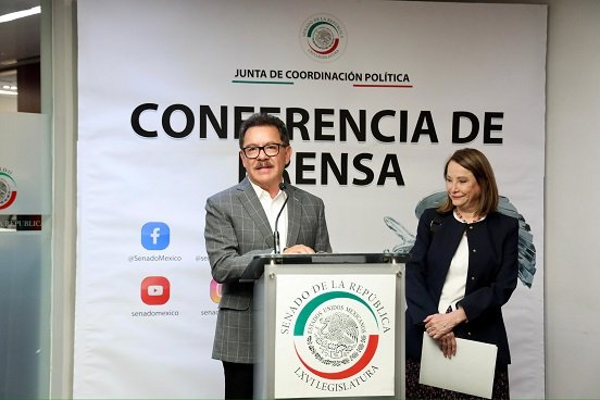 Ciudad de México.- El presidente de la Junta de Coordinación Política del Senado, Ignacio Mier Velazco, y la presidenta de la Mesa Directiva, Laura Itzel Castillo Juárez, informaron sobre la agenda legislativa inmediata, en la que destacan un homenaje al ingeniero Heberto Castillo Martínez, así como reformas en materia de feminicidio, cine, vivienda y organización parlamentaria, en un contexto nacional e internacional marcado por tensiones económicas y geopolíticas.