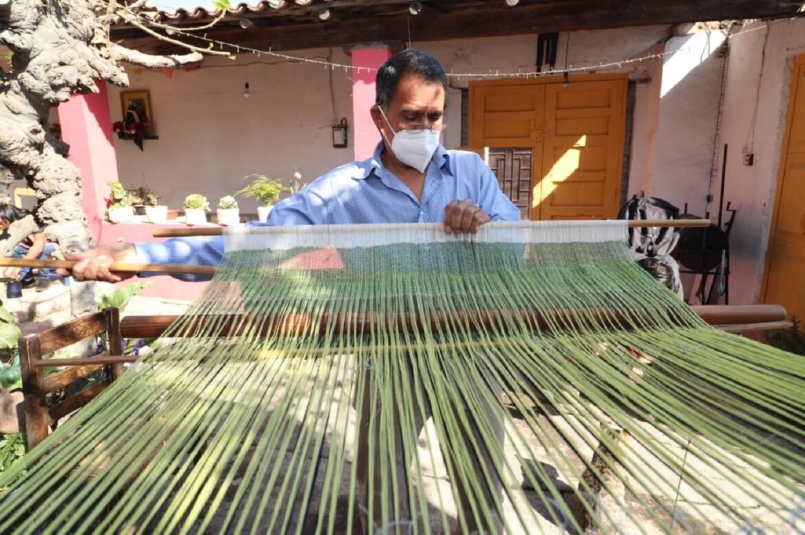 Toluca, Estado de México, 11 de febrero de 2021. Una de las artesanías de mayor arraigo en el territorio mexiquense es el rebozo, prenda cuya manufactura se realiza en telar …