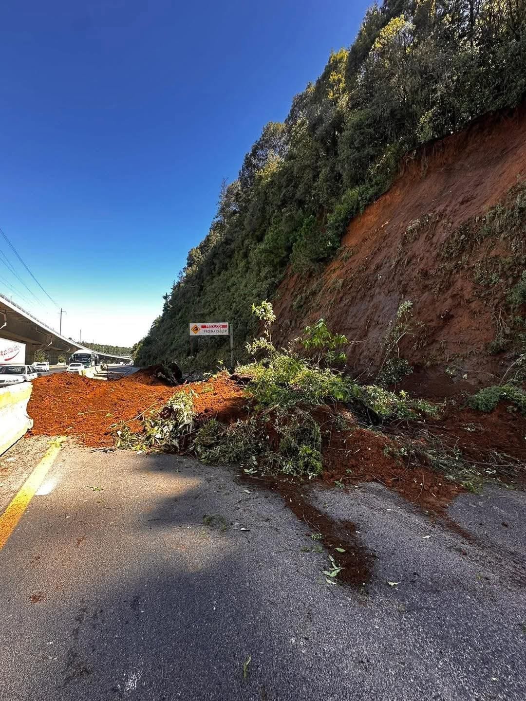 De acuerdo con reportes de Protección Civil y la Guardia Nacional, toneladas de tierra, piedras y lodo se deslizaron desde el talud que bordea la vía, tras las lluvias de las últimas horas. El incidente ocurrió alrededor de las 7:30 de la mañana, sin que se reporten personas lesionadas ni vehículos afectados.