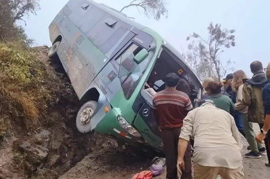 El autobús, que salía del centro ceremonial, volcó presumiblemente por una falla en los frenos en un descenso prolongado, según informaron agentes de la policía de turismo de Cusco, la región dentro de la cual se encuentra la ciudadela.